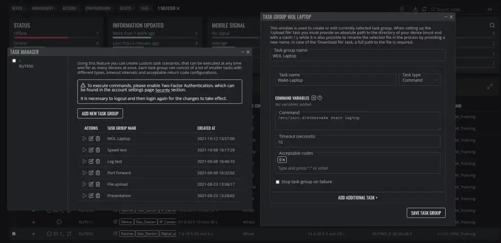 Un cliente quería instalar la funcionalidad AWS Greengrass a un número elevado de routers de una forma eficiente y no uno por uno. A través de la herramienta RMS Task Manager pudo optimizar este proceso permitiendo la distribución masiva a través de un solo clic. Además de cargar el paquete, es posible crear tareas mucho más complejas o elaboradas. RMS puede detectar si una carga se realizó correctamente y enviar más comandos de instalación. El proceso terminará para aquellos con una carga incompleta, pero no afectará al resto de la flota. Dado que cada enrutador se supervisa y controla por separado, estas tareas no interfieren con el rendimiento de los otros dispositivos y el error en uno de ellos no afecta al sistema de carga global.