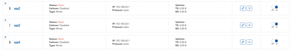 Para cada una de las interfaces en el apartado Physical settings cambiaremos el tipo de Interfaz al valor @wan . Este valor se tiene que escribir manualmente ya que dicha opción no está disponible en el desplegable del interfaz web.