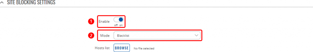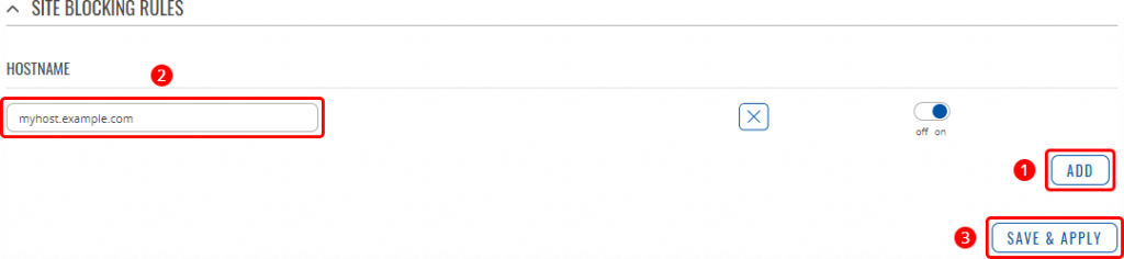 Para ello clicamos en Browse y entramos uno a uno los dominios bloqueados (Blacklist) o permitidos (Whitelist). Debemos clicar en Add, escribir el dominio y luego Save & Apply para guardar cada vez los cambios.