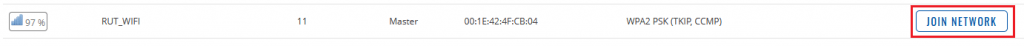 Una vez que se complete el escaneo, se le presentará una lista de puntos de acceso WiFi cercanos. Ubica y elige el Punto de Acceso de RUT1 y haz clic en «Join network»: