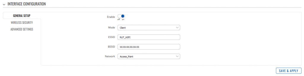 Haga clic en SAVE & APPLY y, si configuró correctamente, tendrá el Cliente inalámbrico funcionando