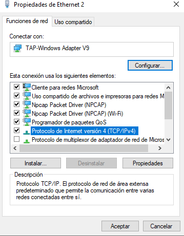 Una vez instalado OpenVPN nos creará una interfaz de red virtual TAP que será la que active y use nuestro ordenador para la conexión a la VPN.