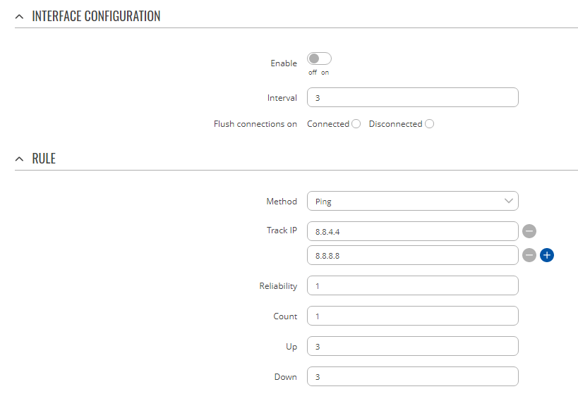 Este mecanismo de failover es difernte al mecanismo de conmutación de SIM que incluyen todos los modelos dual SIM de Teltonika. En este segundo caso, este mecanismo de conmutación de SIM sería como un failover pero limitado a la interfaz móvil donde podemos definir una serie de reglas para el cambio de tarjeta SIM a utilizar en el router.