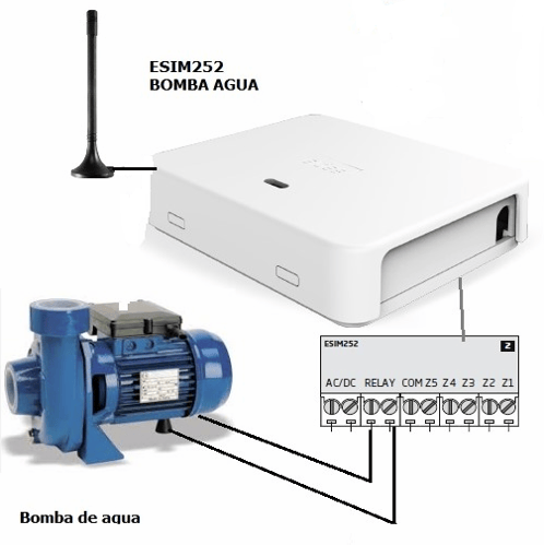 Cada vez que se llena o vacía el depósito el ESIM252 del depósito envía un SMS al encargado que puede confirmar si la bomba se ha arrancado o parado enviando un SMS al ESIM252 de la bomba