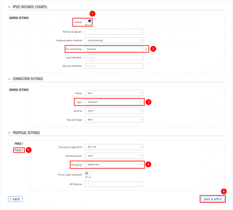 A continuación configuraremos la instancia IPSec creada siguiendo los siguientes pasos: