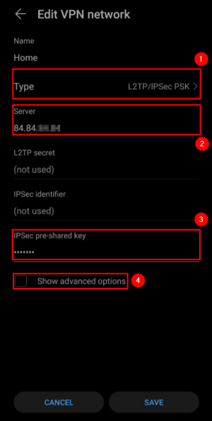 Seleccionaremos Tipo: L2TP/IPsec PSK.