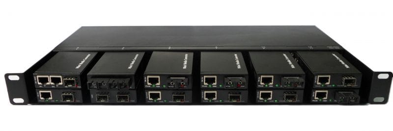 El modelo FR-2211 es un conversor de medio IEEE802.3an (10Gbase-T) a IEEE802.3ae (10Gbase-SR/LR/ER/ZR). El equipo soporta jumbo frames y un mínimo retardo del tráfico entre ambos puertos. Se entrega con un alimentador externo a 220Vac y puede también insertarse en el chassis FR-2000 de anchura 19» y altura 1U con capacidad para 12 conversores y posibilidad de alimentación redundante a 220Vac o -48Vdc.Por otro lado, el modelo FR-2212 es un conversor con dos puertos SFP que admite módulos con velocidades entre 125M y 11.7G (es decir, 100M, 1000M y 10G Ethernet). Puede utilizarse como regenerador de señal para ampliar el alcance en fibra o como conversor MM a SM para cualquiera de las velocidades anteriores. Al igual que el FR-2211 se entrega con un alimentador externo a 220Vac pero puede insertarse en el chassis FR-2000 de 19».