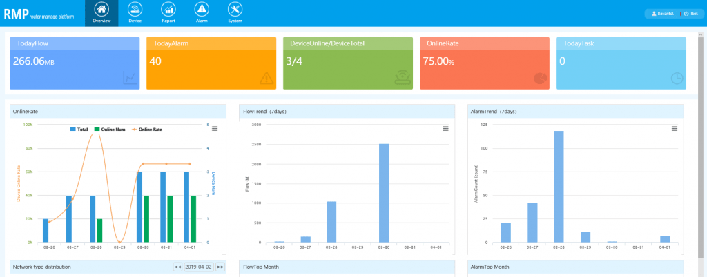 Al igual que el resto de routers de Four-Faith, el F-R200 puede integrarse en la plataforma RMP (Router Manage Platform) de monitorización en cloud del fabricante, pudiendo acceder a él incluso desde direcciones IP públicas o privadas no accesibles a través de Internet.