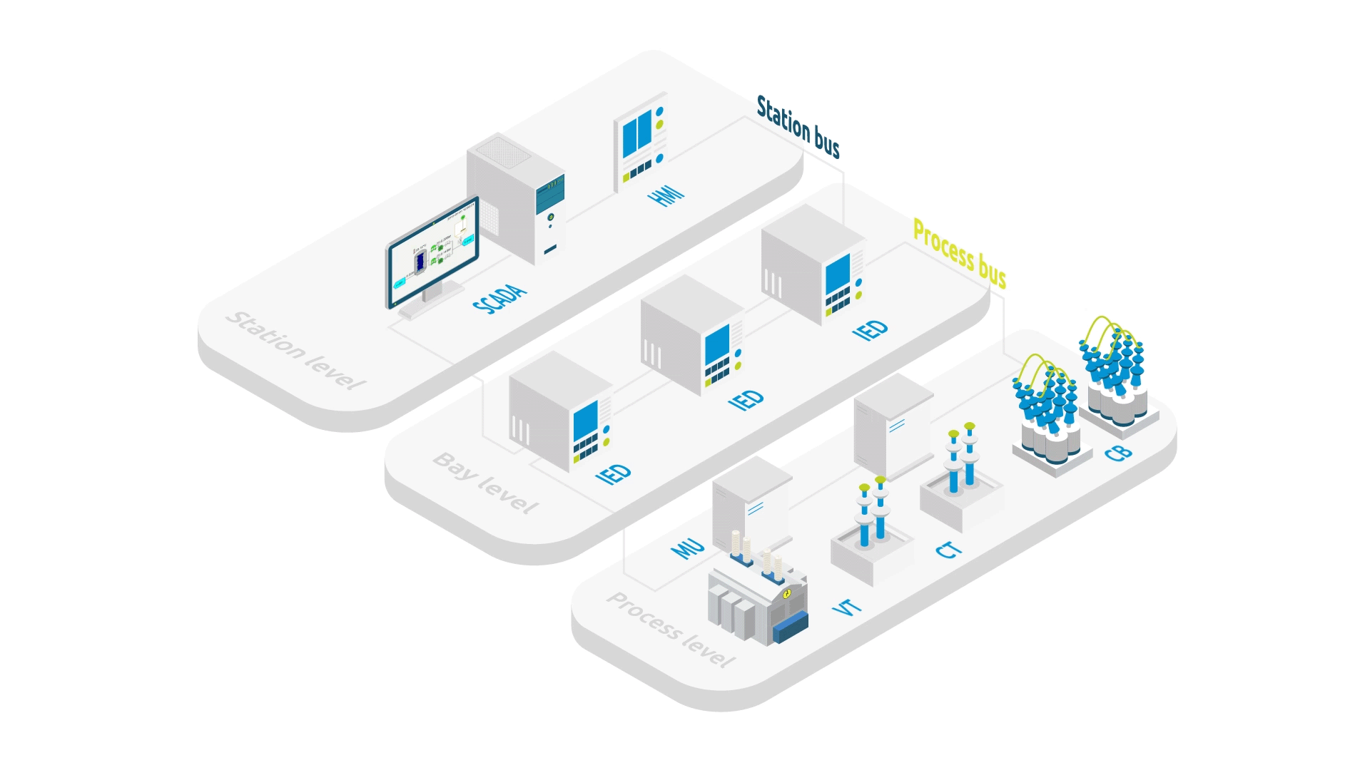La arquitectura de comunicación definida por la IEC 61850 se organiza en tres niveles principales92: