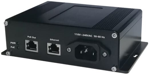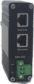 Se presenta en dos formatos: uno para montaje en carril DIN con alimentación en bornas entre 12VDC y 48VDC (incluye PoE boost) y otro para montaje mural con fuente de alimentación 100-240VAC interna en el propio inyector.