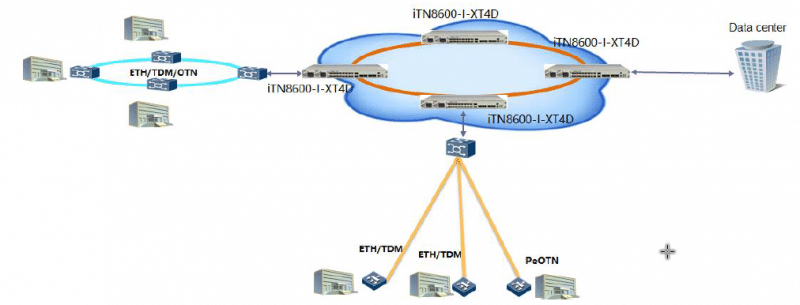 El iTN8600-I-XT4D es un dispositivo híbrido OTN que puede funcionar tanto como muxponder como transponder. Dispone de 2 interfaces de línea que soportan 2x 100G con protección en anillo SNCP y lineal 1+1 y como interfaces cliente 2 puertos de 40G y 16 puertos de 10G con una capacidad de crossconexión total de 400Gbit/s.Gracias a su flexibilidad de uso y configuración, el ITN8600-I-X4TD puede usarse en los siguientes escenarios: