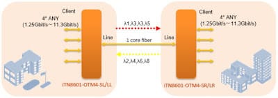 iTN8601-OTM4 – Mux/Demux activo DWDM de 4 canales hasta 10G sobre una única fibra bidireccional