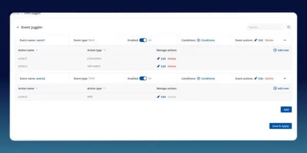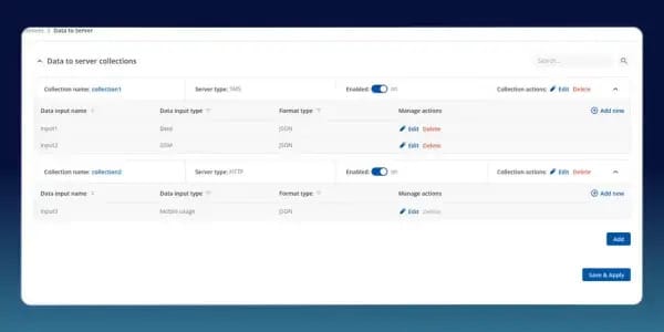 Las páginas de descripción general de Malabareo de Eventos y Datos a Servidor se han actualizado con diseños más limpios y organizados y una navegación mejorada. Estas actualizaciones facilitan la creación, la gestión y la supervisión de las reglas de automatización y la configuración de la transmisión de datos, lo que mejora la legibilidad y agiliza los flujos de trabajo en todas sus soluciones de IoT.