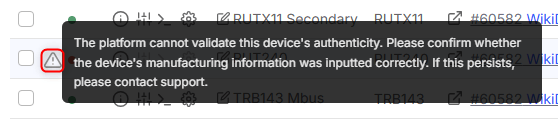 The platform cannot validate this device's authenticity. Please confirm whether the device's manufacturing information was inputted correctly. If this persists, please contact support.
