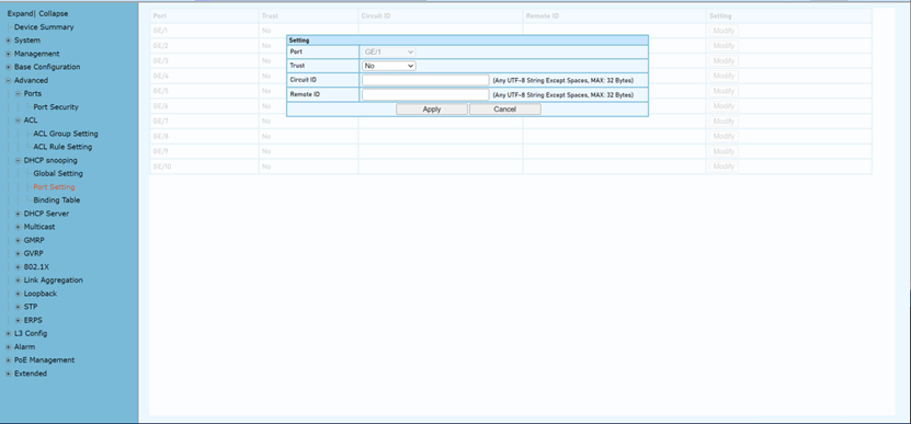 (config-if) #ip dhcp snooping trust