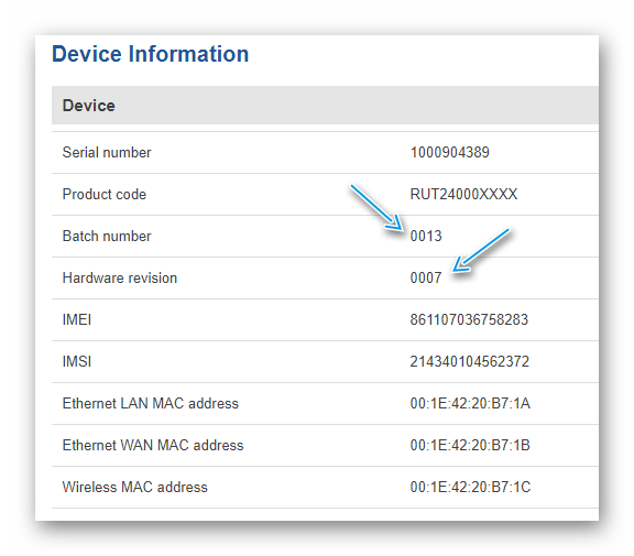 Para ello necesitas confirmar la versión HW de tu router y el batch number. Basta con que entres en el servidor web del rotuer y vayas al menú System – Device. Recuerda que necesitas un revisión HW 0007 o superior y un batch number 0010 o superior para que el equipo RUT2XX puede alimentarse a través del puerto LAN.