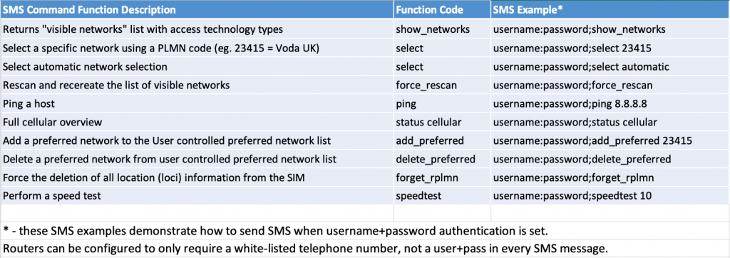 Control remoto completo. Todo lo que se puede hacer en la interfaz del router también se puede lograr de forma remota con comandos SMS. A continuación mostramos algunos ejemplos de comandos SMS: