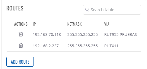 2. Que hayas creado la ruta hacia el dispositivo con el quieres conectar. Recuerda que aparte de los clientes VPN del HUB que son los dispositivos Teltonika y tu ordenador (como RMS_user o custom_user) debes crear una ruta hacia cada uno de los dispositivos detrás del router a los que quieras conectarte.