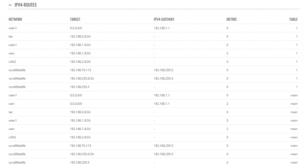 Para identificar el túnel iremos al apartado Status – Routes y en la tabla de rutas podremos ver unas con el nombre tunxxxxx (donde xxxxx es el identificador del túnel, 06da9b en nuestro ejemplo) .