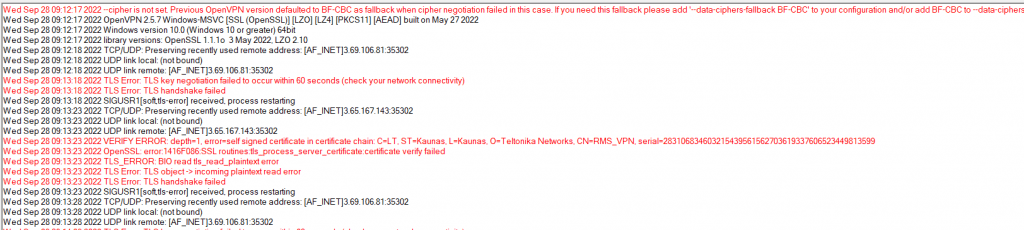 OpenVPN va lanzando nuevas versiones que actualizan algunas librerías como SSL y solucionando algunos temas de seguridad. Teltonika actualiza automáticamente dichas librerías en los servidores VPN que creamos en AWS con cada hub. Si vemos que el router no conecta con el servidor y en el log de sistema vemos algún error de negociación TLS deberemos actualizar el FW del router a la última versión y luego volver a cargar los certificados y la configuración desde RMS.