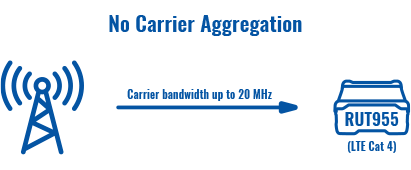 LTE Cat 4 no soporta agregación de portadoras. En consecuencia, en la mayoría de casos tendremos velocidades inferiores en dispositivos LTE Cat 4 que en dispositivos LTE Cat 6, o dicho de otro modo, podemos esperar velocidades superiores en la gama RUTX que en la gama RUT2 o RUT9 bajo las mismas condiciones.